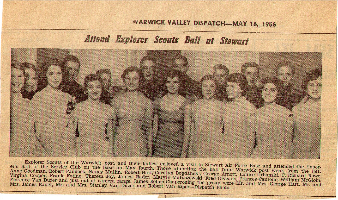 Previous Page To see Comments, click below: by   ed   winchester - "beautiful group" Sad to say my scouting ended with the Cub Scouts. They didn't tell us that Boy Scouts had dances. This photo is from 1956. The handsome/pretty couples are all familar Warwick names. ... from Fred Givens Previous Page Click to zoom in to larger photo |