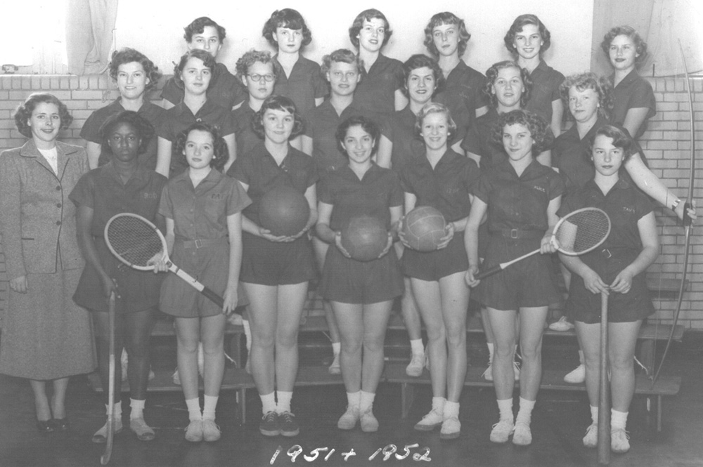 Previous Page To see Comments, click below: by   Josie   Fiorito - " Where is the photo?..." by   Walt   Seely - "The faculty advisors name ..." by   glenn   doty - "Row two of the girls' group ..." by   BOBBIE   WILCOX, LYONS - "GIRL AFTER SHIRLEY AND BEFORE ..." by   Betty Lou   Smith - "The girl in the last row ..." by   Betty Lou   Smith - "Just noticed you needed names ..." by   Liz   Feagles Brown - "Faculty advisor was either ..." by   Tessie   Lesando - "behind tavi - Georgia Ryerson" This was the "Girls Leaders Club", the 1951-52 version. There was also a "Boys Leaders Club." Both were sports related I would guess by the various equipment displayed here. I do know every face, but some names now escape me. The faculty advisor, the young woman in teacher clothes at the left. Can't remember her name. Otherwise L. to R. Row 1 Barbara Logan, Pat Marsh, Jane Wood, Tessie Lesando, Shirley Sinsabaugh, ???, Tavy Beafore Row 2 ???, Ethel Ferdon, Delores Dowd, Elizabeth Ott, Toni Manno, ???, ??? Row 3 ???, Bobbi Wilcox, ???, Liz Feagles, Betty Lou Gray, ??? Please help with the names ... from Previous Page Click to zoom in to larger photo |